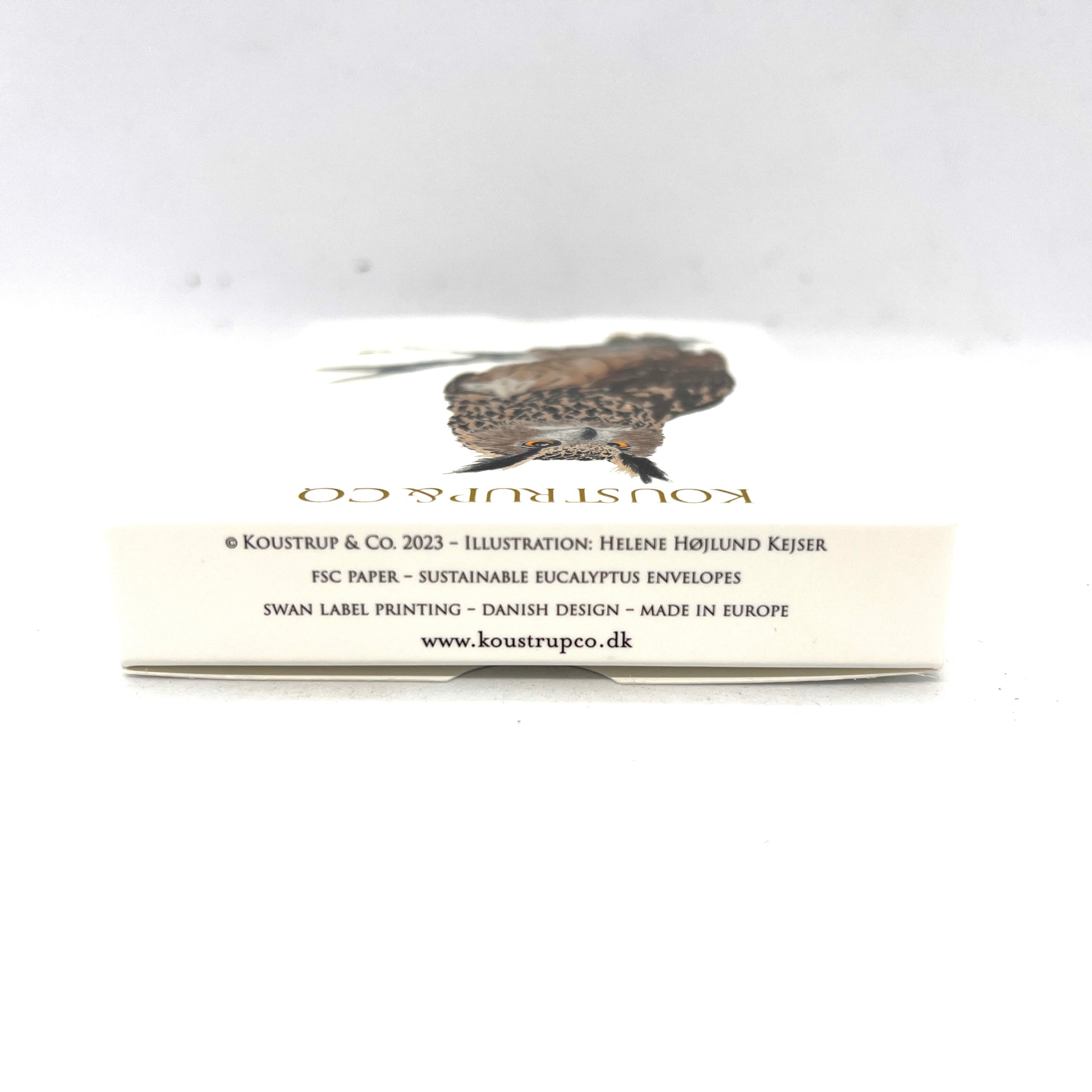 Barn Owl Little Danish Art Notecards includes 2 different artistic designs, five notecards per design, for 10 cards and envelopes. The mini-cards will make a stunning note to a friend or family member. These cards are produced by Danish company Koustrup & Co.