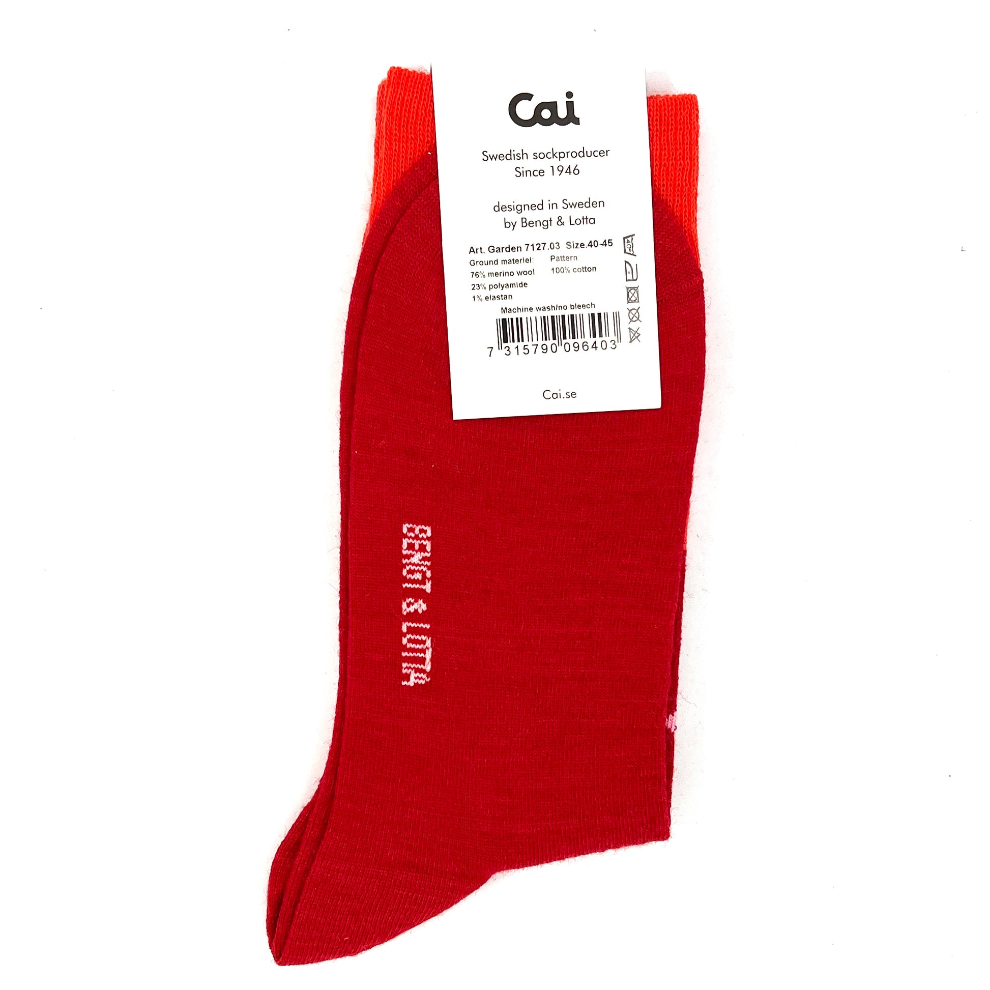 The Bengt & Lotta Garden socks in red have a beautiful Scandinavian floral design that is sewn in. Quality made with Merino wool. Makes the perfect gift. Designed by Swedish designers Bengt & Lotta.
