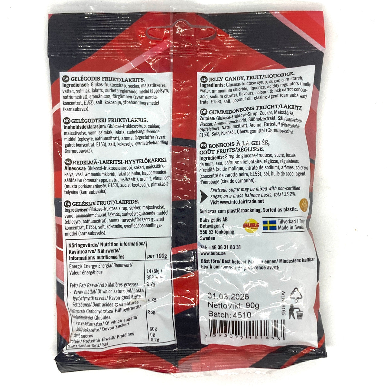 Bubs Raspberry Licorice Skulls Candy has a fruity licorice thing going on that sets your tastebuds into ultra happy mode. Please do not open the bag without someone to share with otherwise you will eat the whole thing. Though we wouldn't judge. Made in Sweden by Bubs Godis.