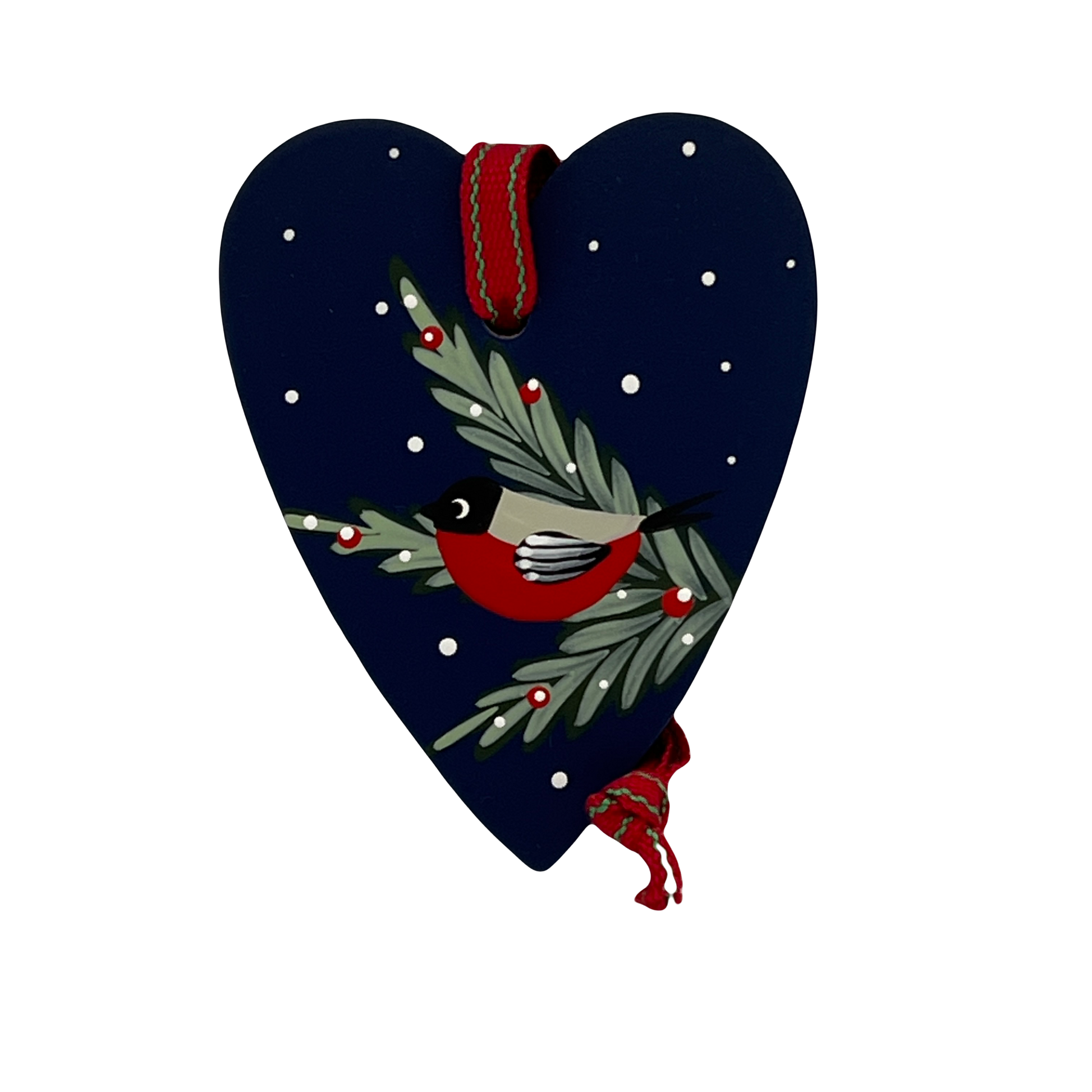 The Bullfinch Heart Wood Ornament will be the perfect addition to your Christmas Tree. Made and Hand Painted in Sweden.
