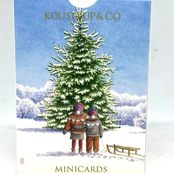 Christmas and Children Little Danish Art Notecards includes 2 different artistic designs, five notecards per design, for 10 cards and envelopes. The mini-cards will make a stunning note to a friend or family member. These cards are produced by Danish company Koustrup & Co.