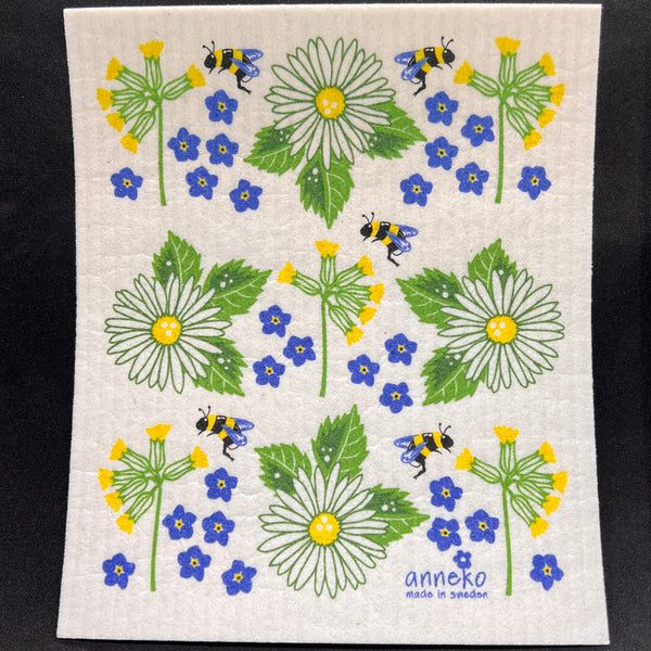 Flowers and Bees Swedish Dishcloth