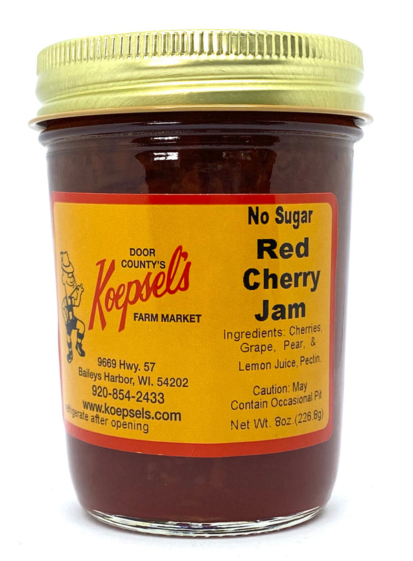 Koepsel's No Sugar Red Cherry Jam is a great taste of Door County made with local cherries with no added sugar. Great Door County cherry flavor and the perfect topping for you toast.