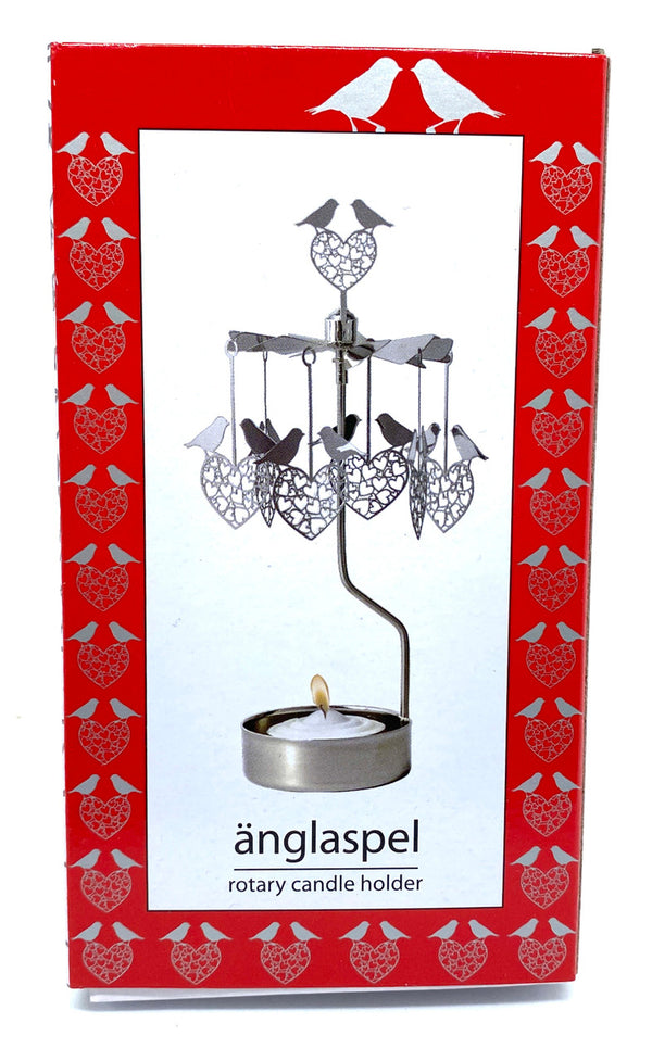 Made in Sweden this candle holder shows off classic Swedish design and function. Bring home a traditional decoration to light up your mantle and give a warm glow to your house. Light a tea light and watch as the decorative ornament spins and reflects light across the room.