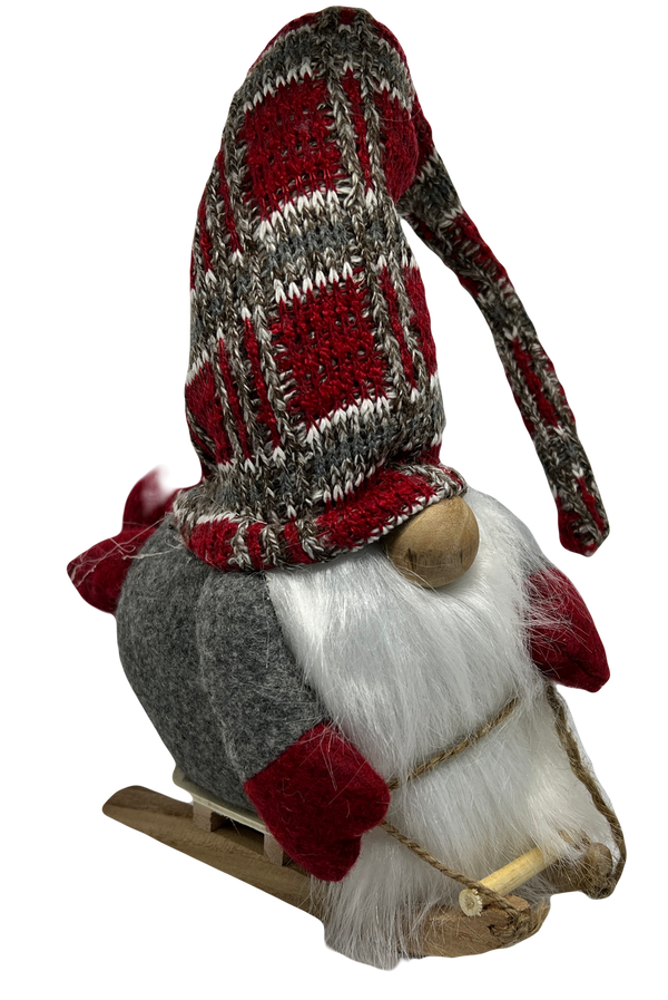 Sled Gnome makes a fun addition to your winter decorations. Him and his long plaid hat are flying on this sled!