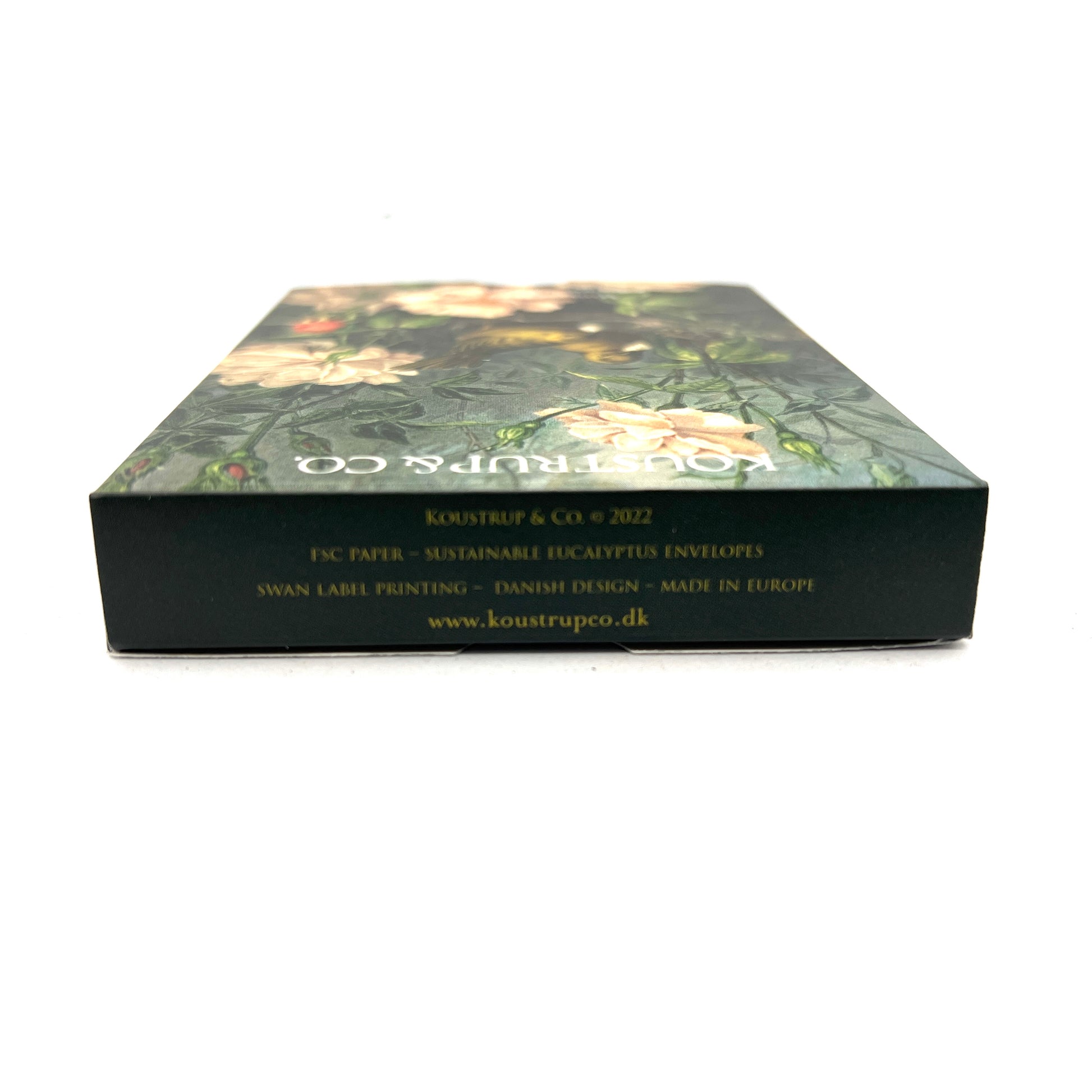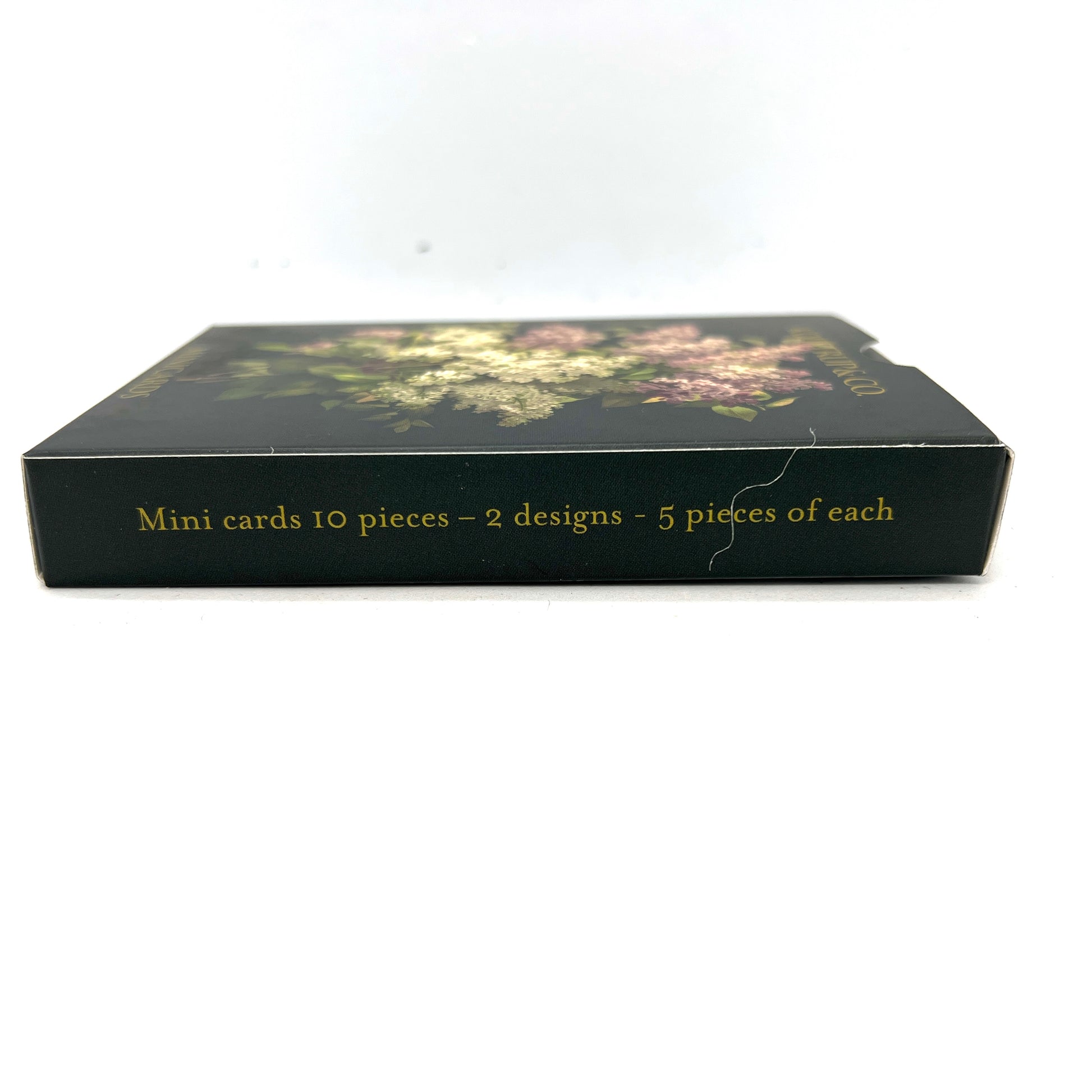 Spring Bird & Flowers Little Danish Art Notecards includes 2 different artistic designs, five notecards per design, for 10 cards and envelopes. The mini-cards will make a stunning note to a friend or family member. These cards are produced by Danish company Koustrup & Co.