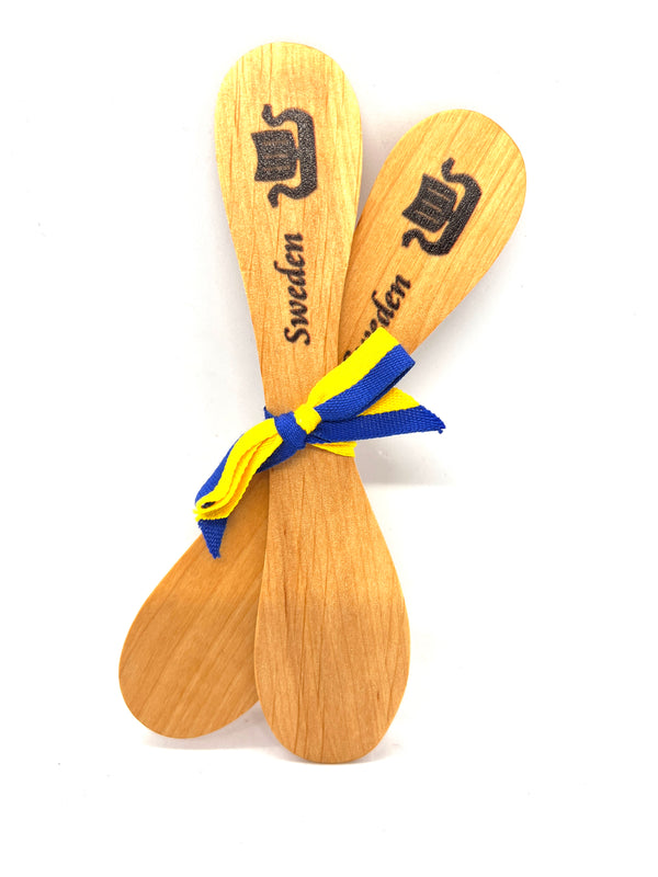 The Sweden Wood Spreader pack is made from juniper wood and are a durable classic Scandinavian spreaders. These will be your new favorite utensils. The handle has Sweden and viking ship on it. It will make a great gift or souvenir for friend or collector. Made in the Sweden.