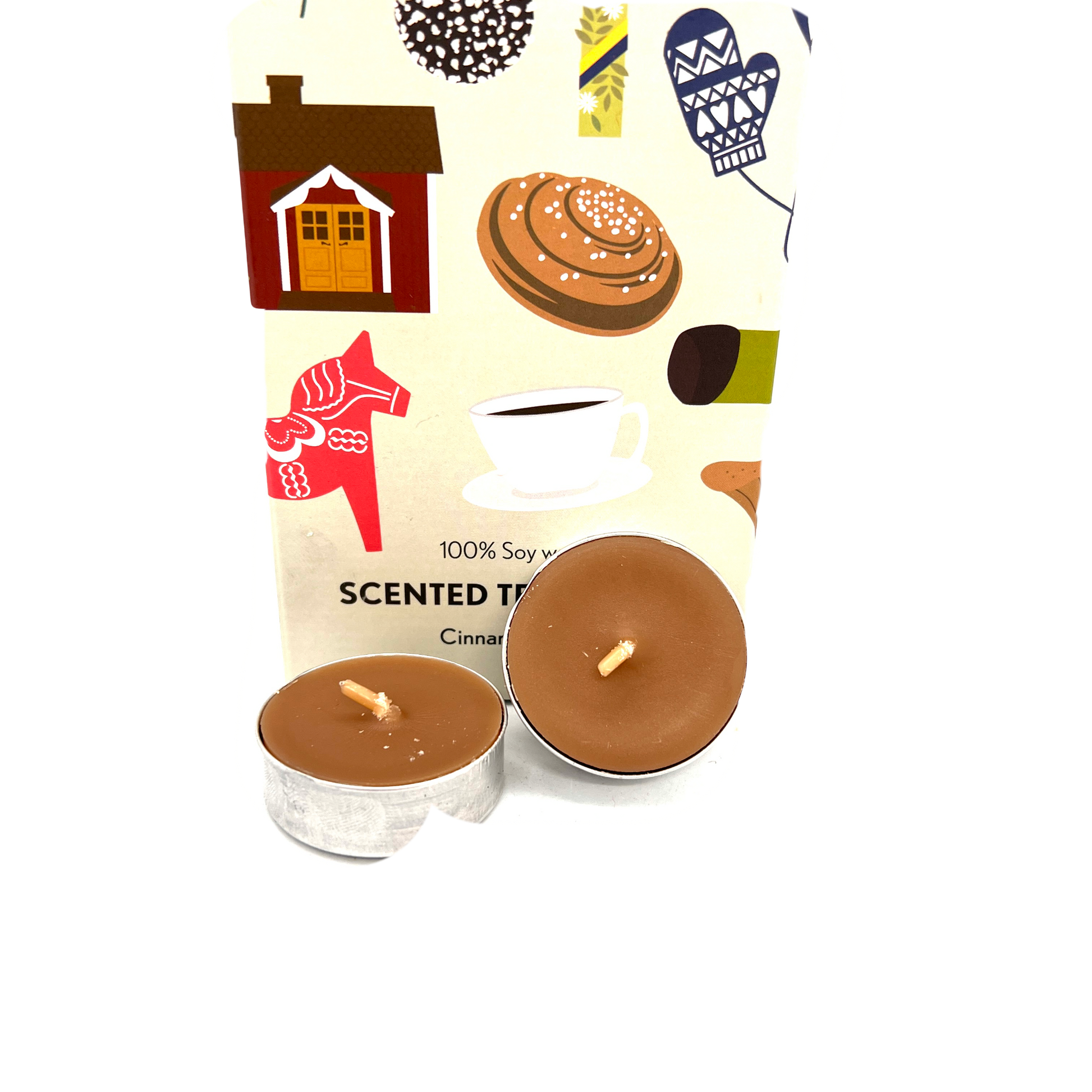 The Swedish Fika Scented Candle will bring dreams of cinnamon rolls, sweet pastries, and coffee. This cinnamon bun scented tea light candle burns for 3 hours and will make your house smell like sweet baked treats. Pack of 10 tea lights