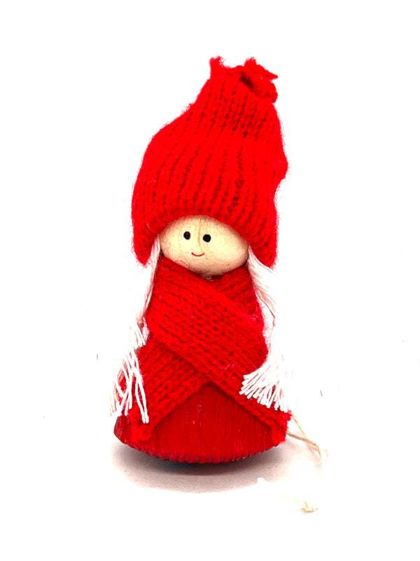 Set off your Christmas tree in Scandinavian style and design with the Tomtegirl Red Ornament. She is handmade of wood in Sweden. She is 3 inches tall and makes a great gift.