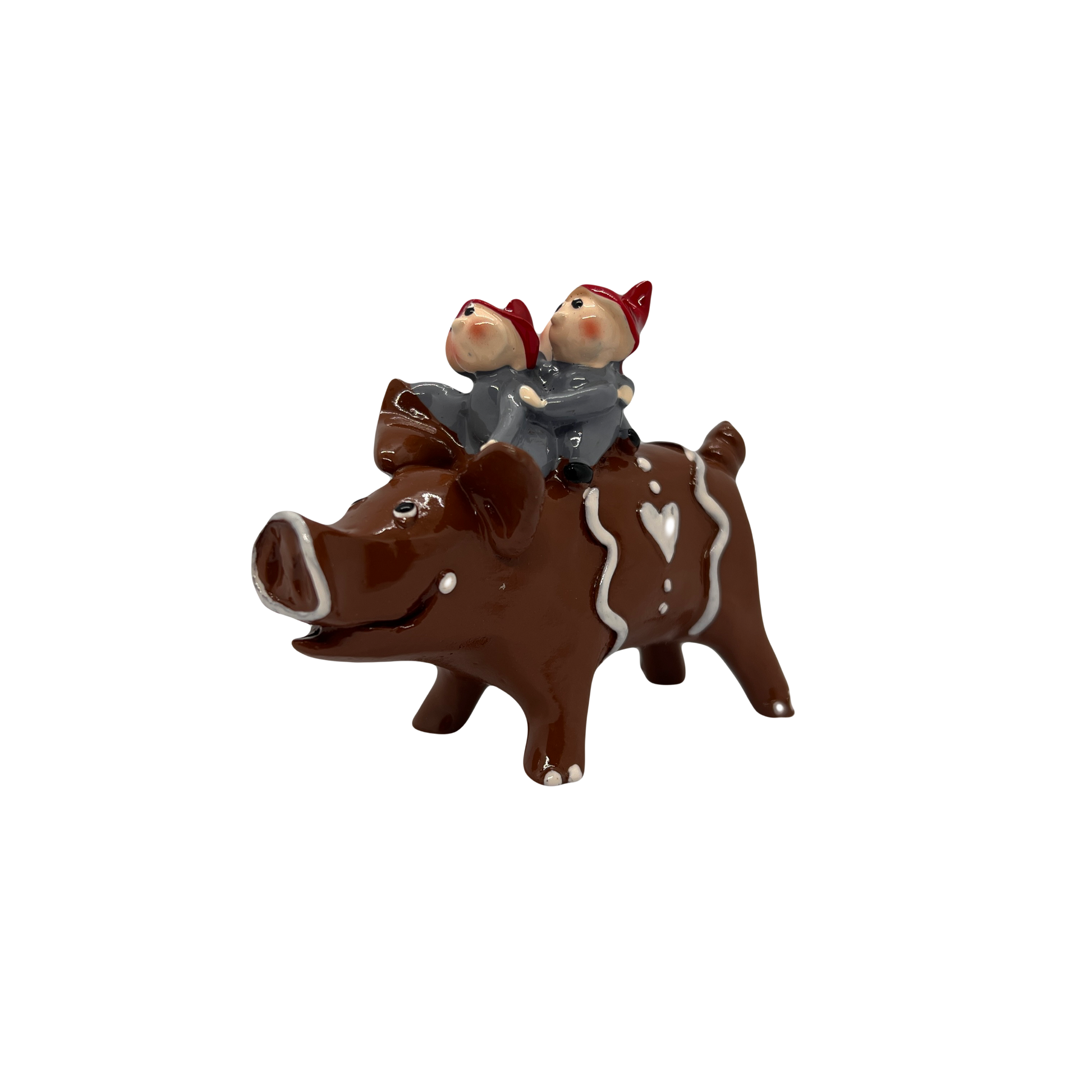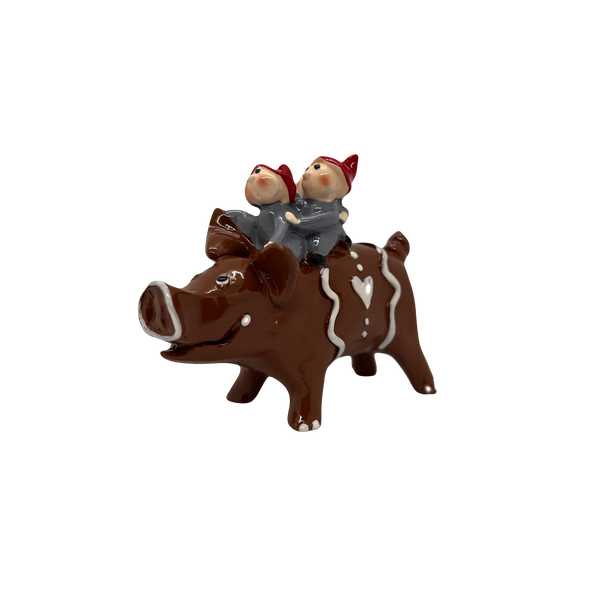 The Tomten Christmas Statue is a ceramic statue featuring Tomten riding on a Christmas pig it will be the perfect timeless Christmas decoration.