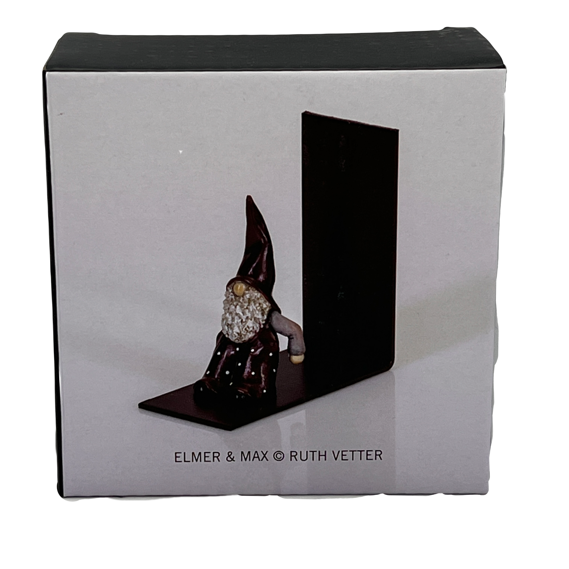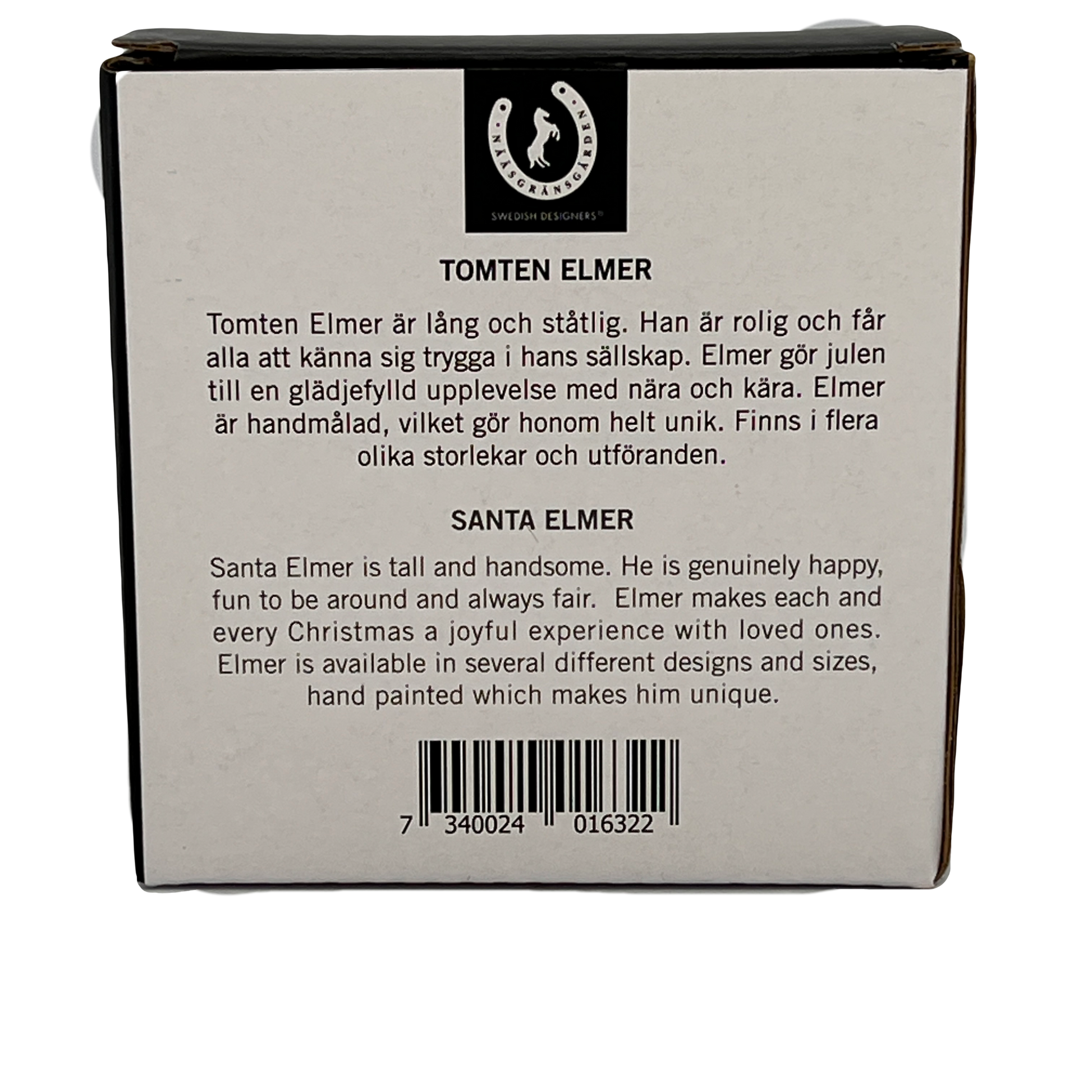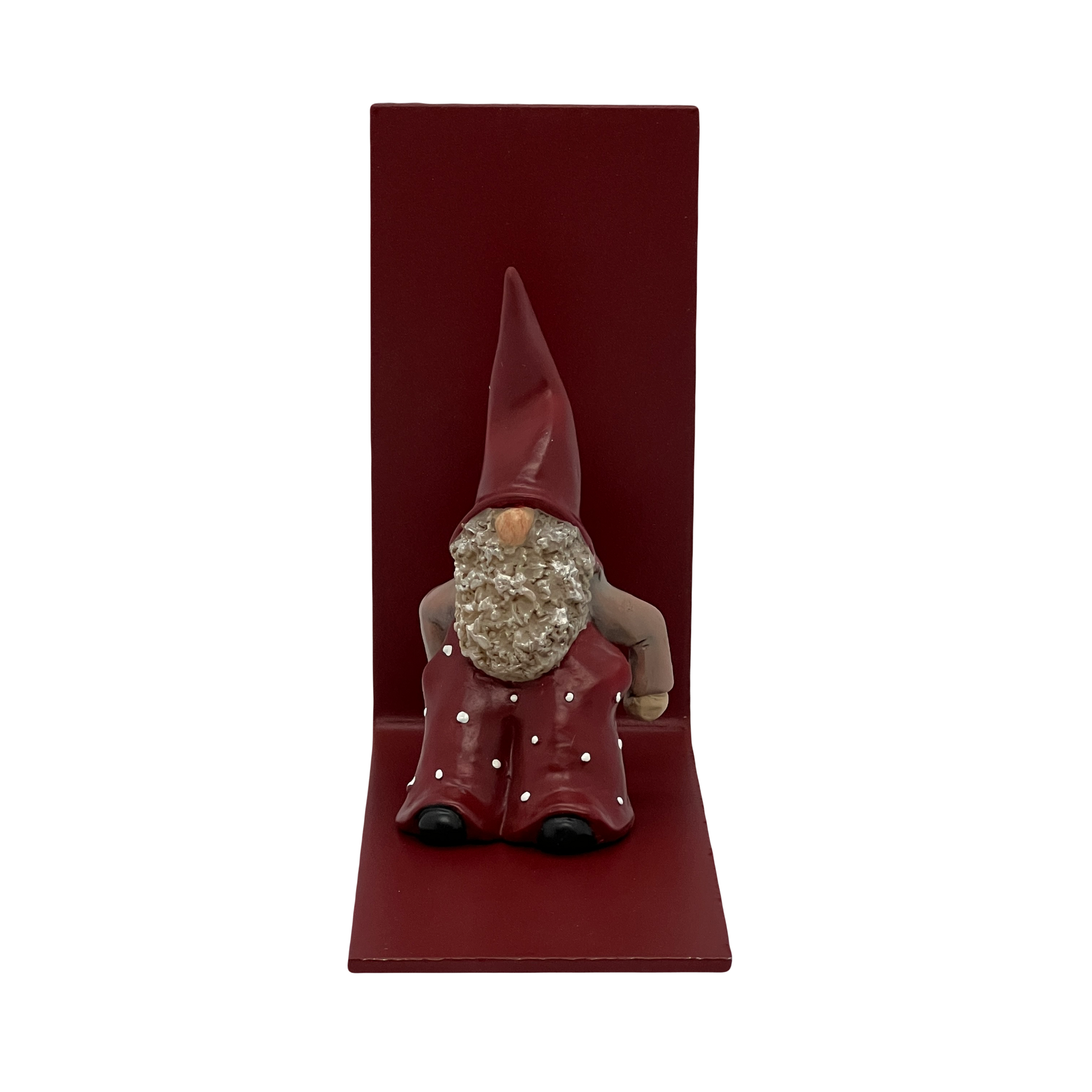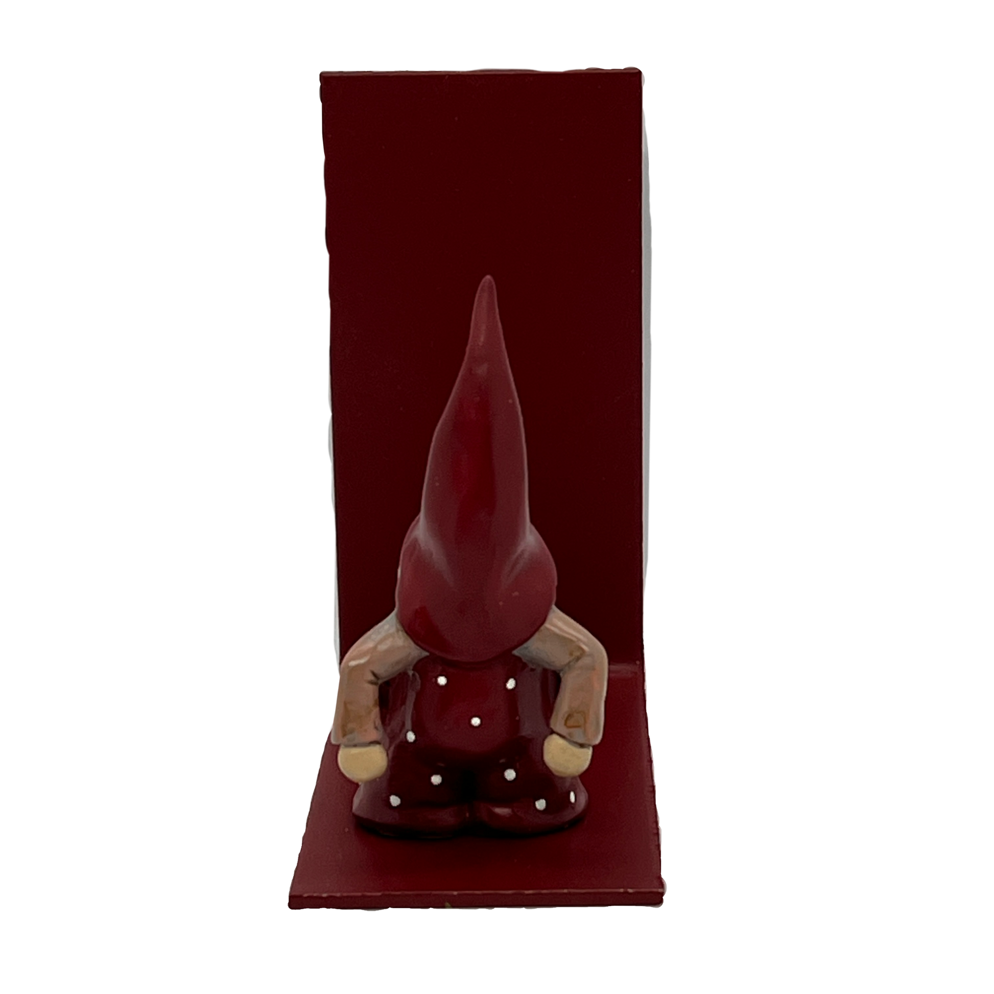 Santa Elmer is tall and handsome. He is genuinely happy, fun to be around and always fair. Elmer makes each and every Christmas a joyful experience with loved ones. Elmer is hand painted and features a magnet on his feet which makes him movable to hold napkins in place on his red metal stand.